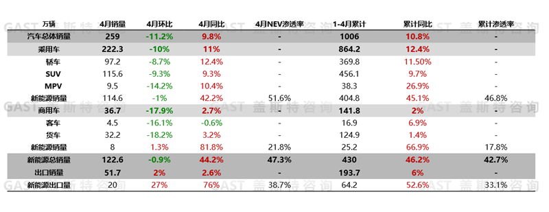 4月,新能源汽車銷售122.6萬輛,同比增長44.2%。從滲透率角度看,4月全市場新能源滲透率達47.3%,其中乘用車市場新能源滲透率達51.6%。